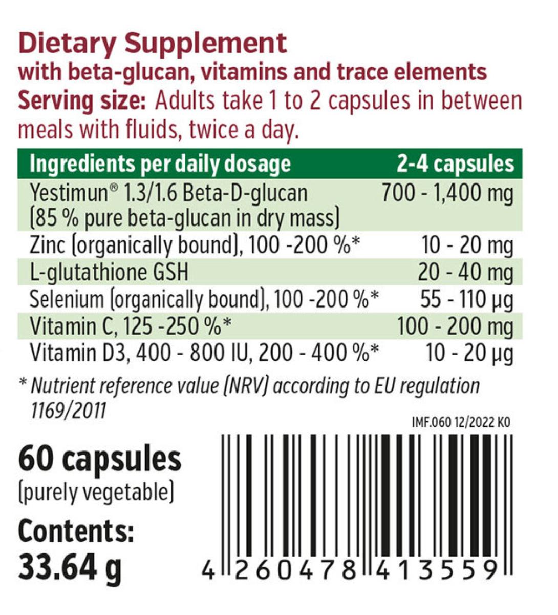 ImmunePLUSforte indeholder selen, zink, vitamin D og C, som fremmer den normale funktion af et sundt immunsystem. ImmunePLUSforte(tidligere kendt som immunforte) indeholder de dokumenterede ingredienser i Immune PLUS med yderligere immunrelaterede naturlige ingredienser. De synergetiske virkninger fra disse vigtige næringsstoffer med Yestimun® beta-glucan af høj kvalitet er en enestående egenskab.