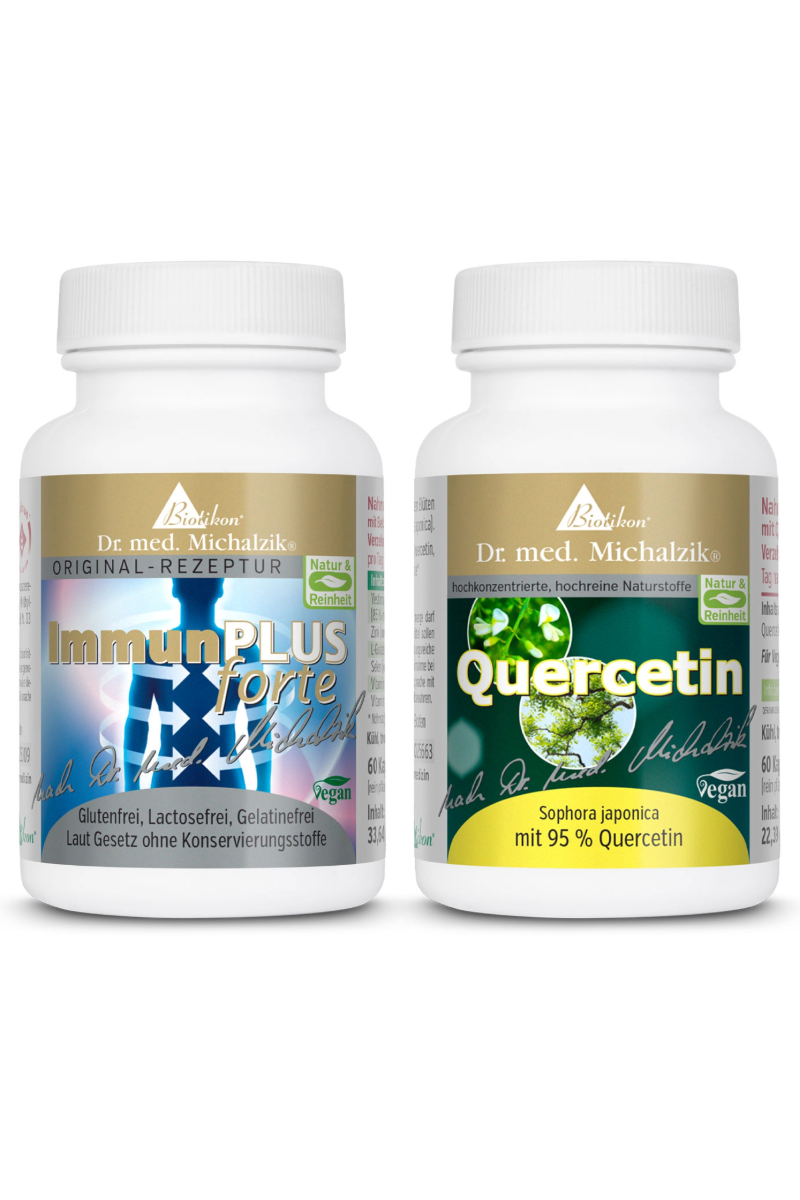 Dieses Immunpaket wurde speziell für die aktuelle Situation zusammengestellt. Es besteht aus einer Charge ImmunePLUSStärkeund eine Charge Quercetin.