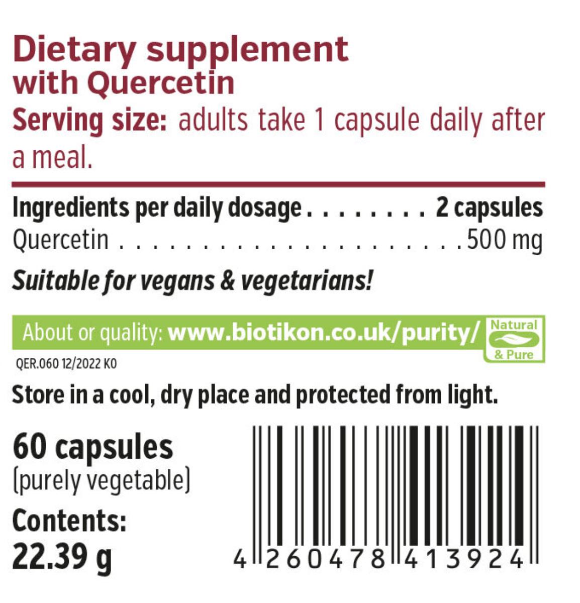 aus den Blüten des japanischen Schnurbaums (botan. Sophora japonica) mit 95% reinem Quercetin. Quercetin gehört zur Gruppe der sekundären Pflanzenstoffe.