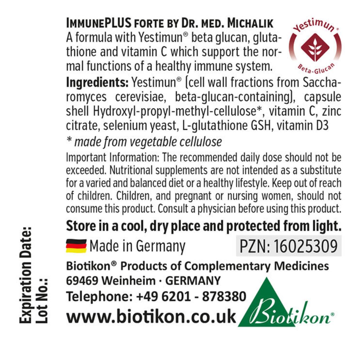 ImmunPLUSStärkeenthält Selen, Zink, Vitamin D und C, die die normale Funktion eines gesunden Immunsystems unterstützen. ImmunePLUS forte (früher Immune forte) enthält die bewährten Inhaltsstoffe von Immune PLUS mit zusätzlichen immunfördernden natürlichen Inhaltsstoffen. Die synergetischen Effekte dieser wichtigen Nährstoffe mit hochwertigem Yestimun® Beta-Glucan sind ein herausragendes Merkmal.