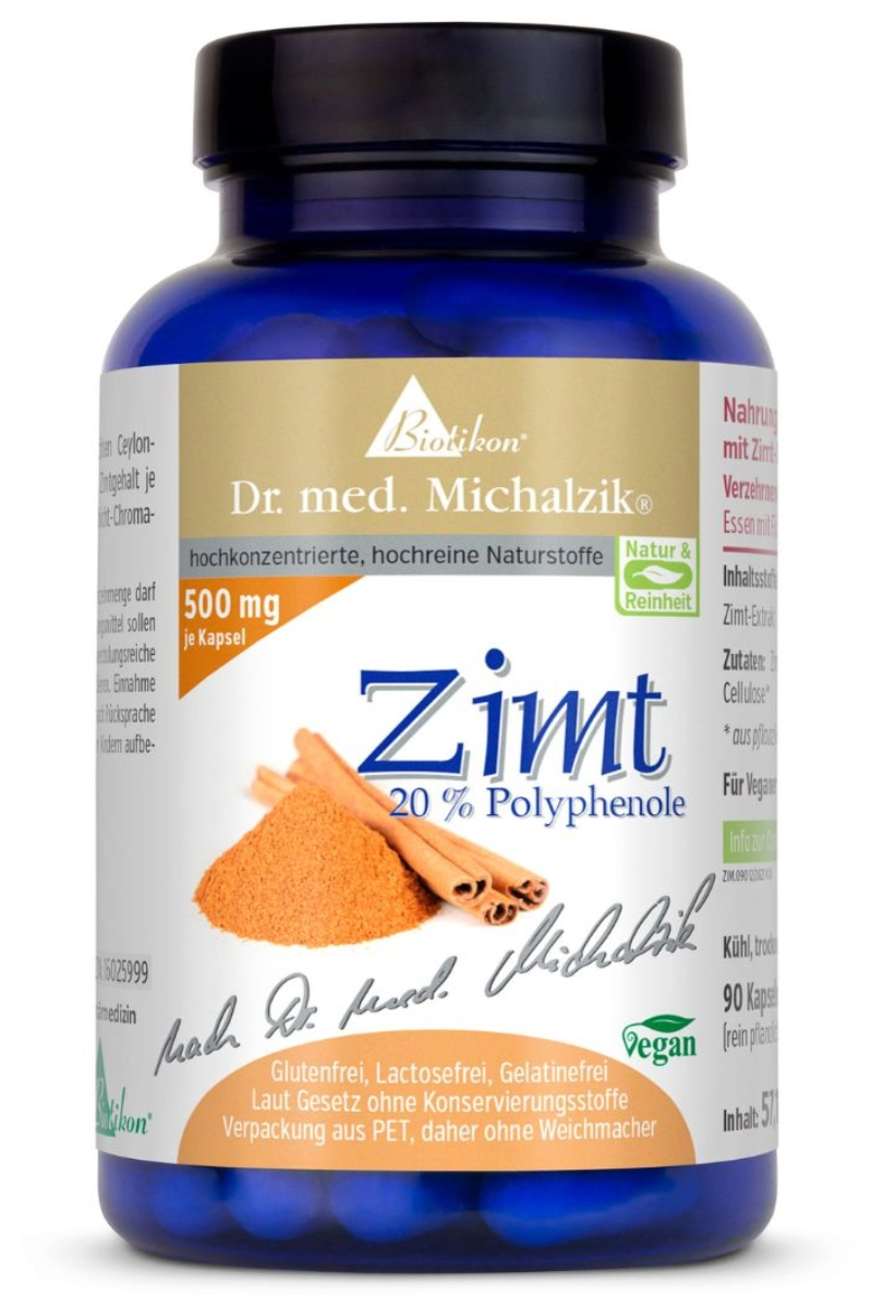 Packungsinhalt:90 Kapseln, jede Kapsel enthält 500 mg Zimtextrakt.