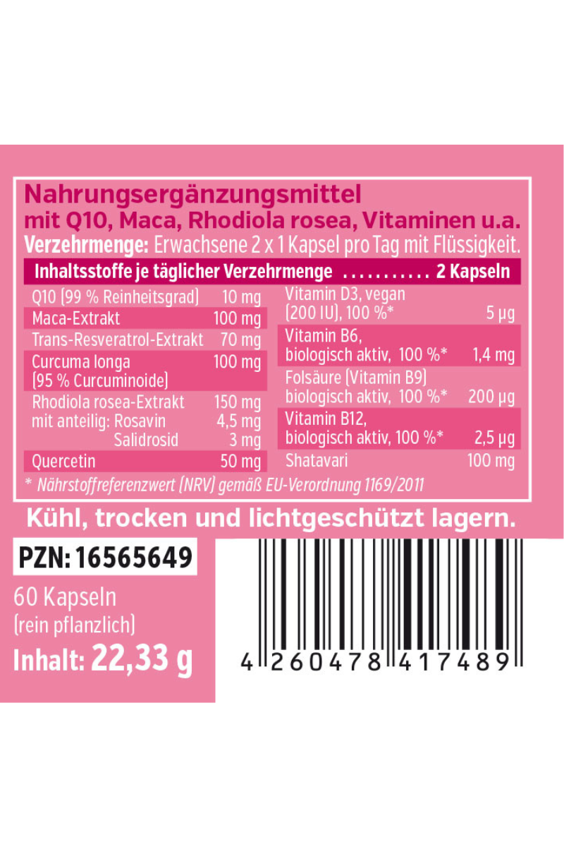Nuestra fórmula perfeccionada contiene, entre otras cosas, vitamina B6, que favorece la regulación de la actividad hormonal.