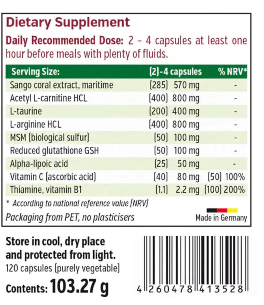 | Homocysteine Level Metabolism FormulaVitamin B12, biologically active Methylcobalamin (100) 200%* (2,5) | 5mg |