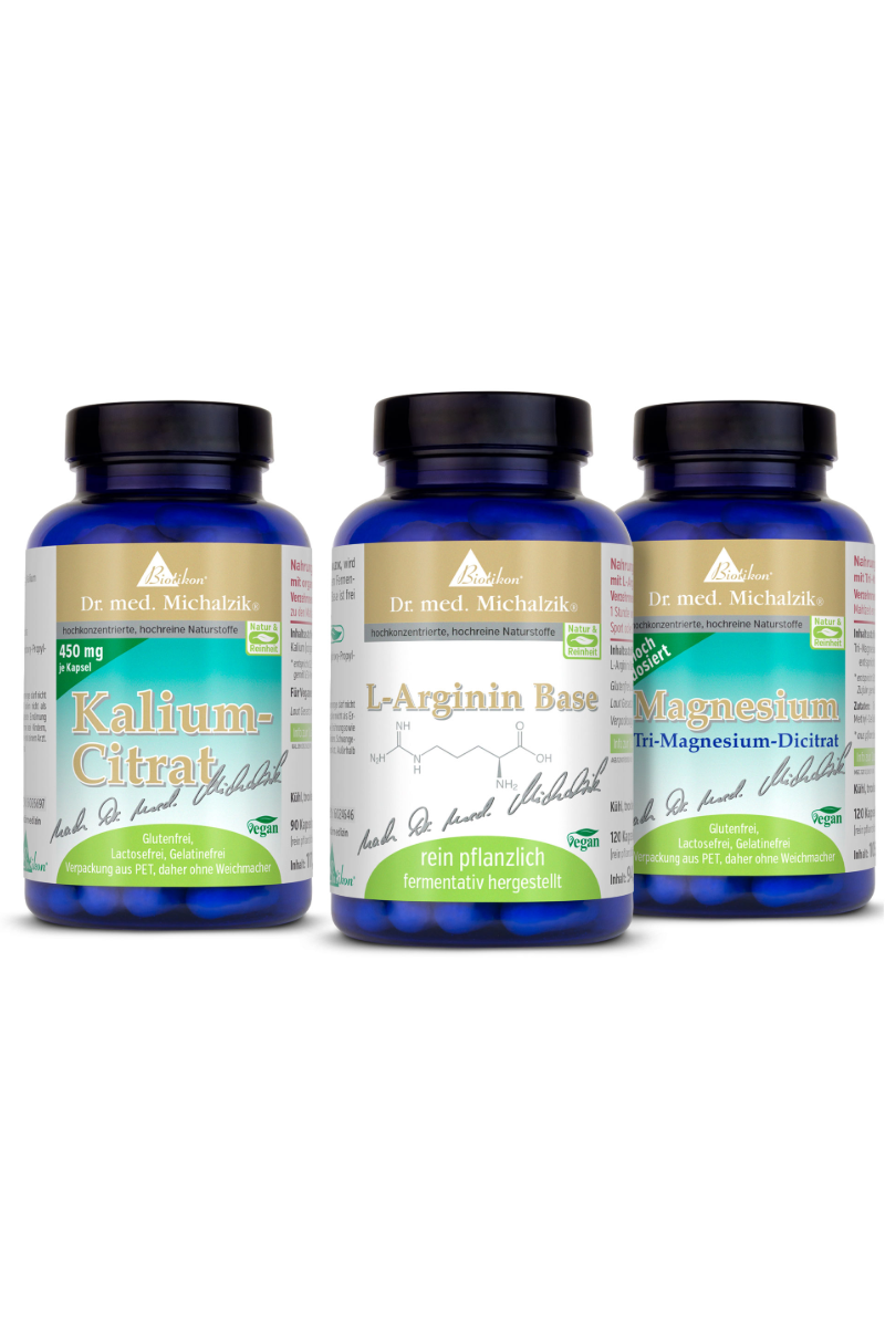 Kosttilskudd med L-argininbase, organisk bundet kalium og tri-magnesiumdicitrat blodtrykksformel AKM Extra ifølge Dr. med. Michalzik®️