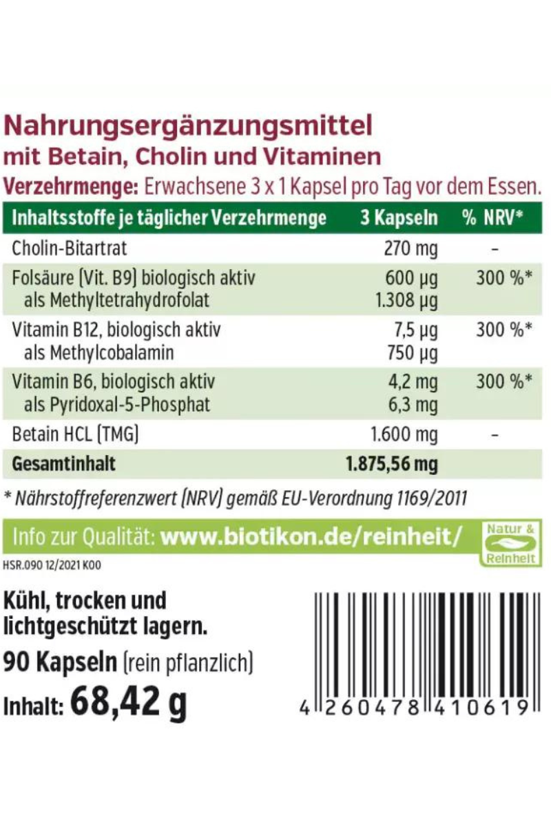 | Folic Acid (Vitamin B9) biologically active 300% * | 600 µg |