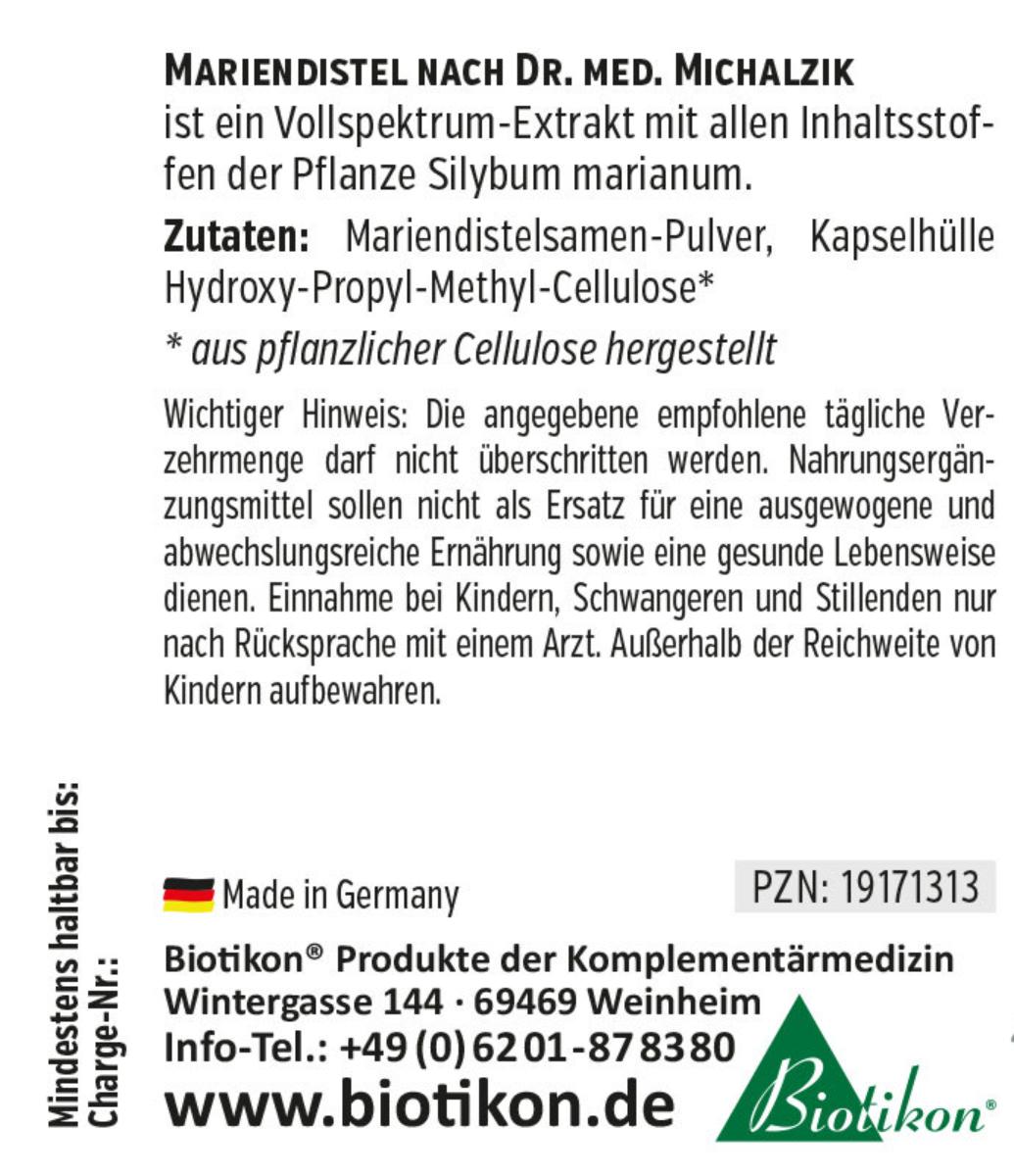 Ciulinul de lapte de Dr. med. Michalzik®️ cea mai pură calitate de la Biotikon®