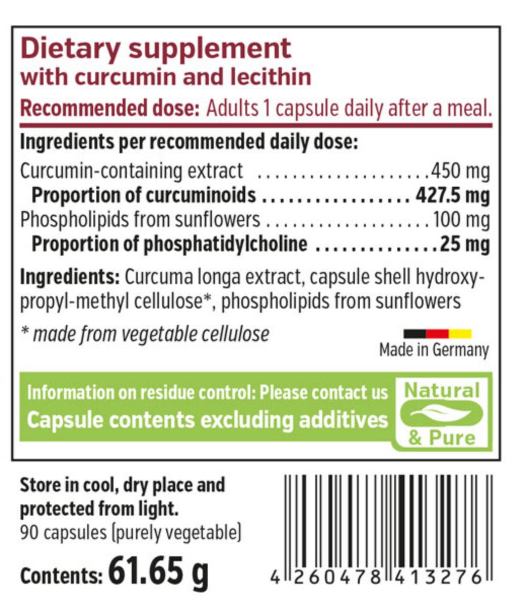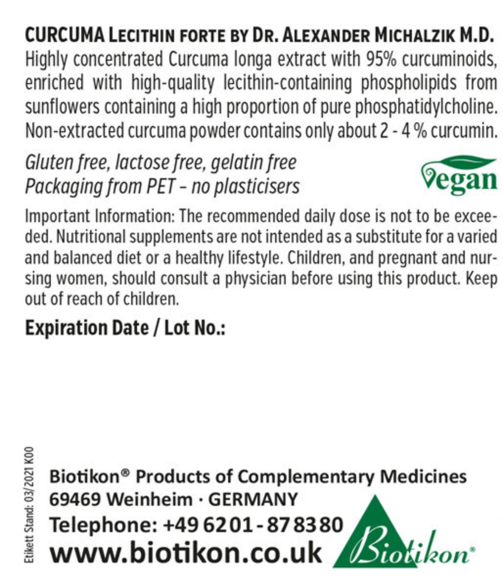 Curcuma Lecitina fortede Dr. Alexander Michalzik MD conține curcumină naturală din extract de Curcuma longa care este îmbogățită cu extract de fosfolipide de înaltă calitate, care conține lecitină, din floarea soarelui nemodificată genetic, cu un conținut ridicat de fosfatidilcolină pură.
