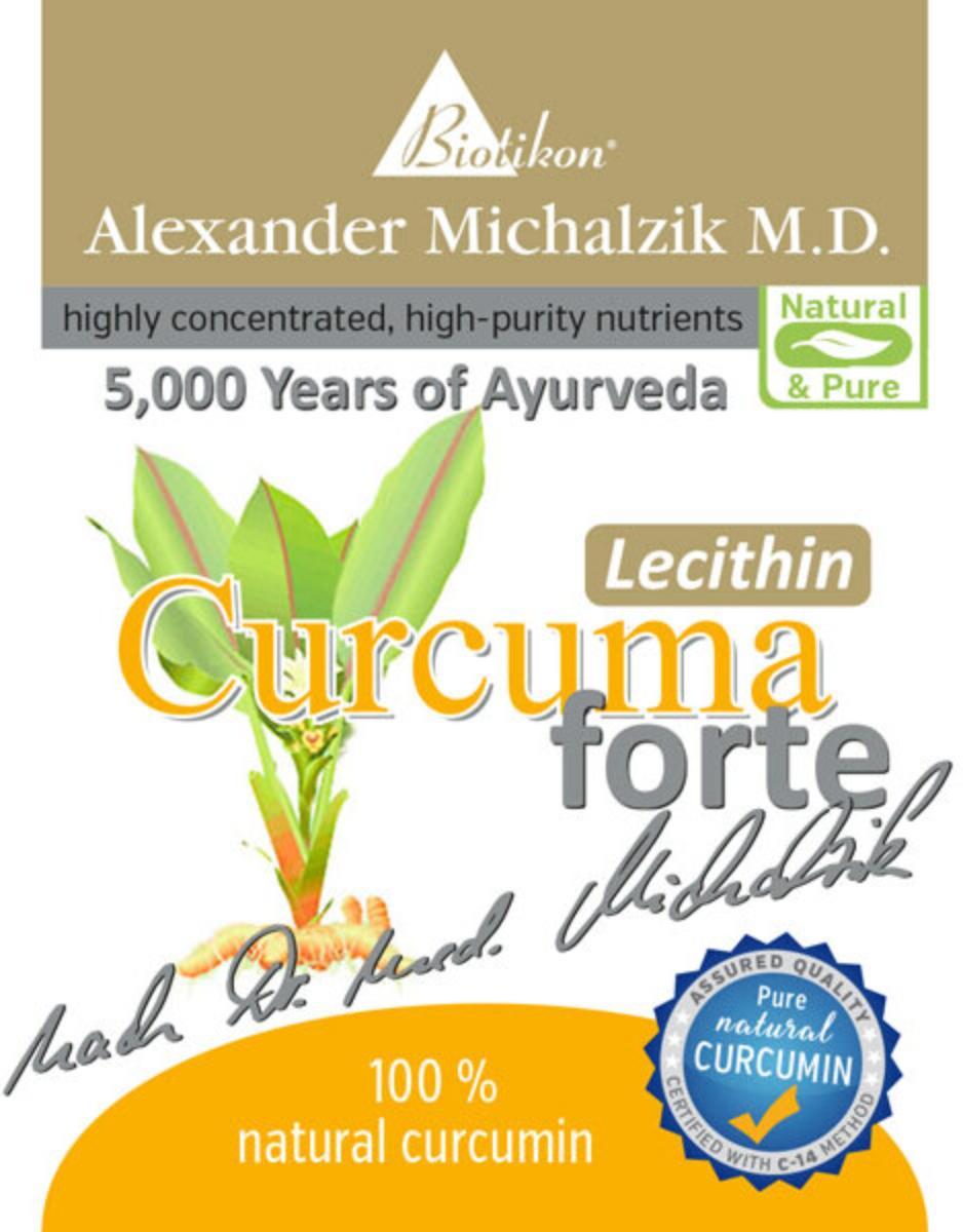 Curcuma Lecithin forte de Dr. Alexander Michalzik MD se caracterizează prin conținutul său excepțional de ridicat de curcuminoizi. Fiecare capsulă conține427,5 mg de curcuminoizi naturali.